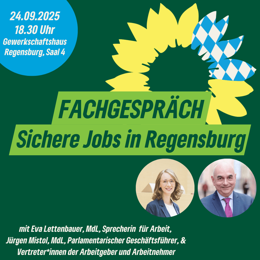 Fachgespräch „Sichere Jobs in Regensburg“ Beitragsautor Von Marcel Hylla Beitragsdatum 16 September, 2025 Datum: 24 September, 2025Uhrzeit: 18:30Ort: Gewerkschaftshaus Regensburg, Richard-Wagner-Straße 2, Saal 4Hier gibt es mehr Infos zur Veranstaltung ← Polit Talk → REGENSBURGforen – Wirtschaftsförderung mit Energieinnovation
